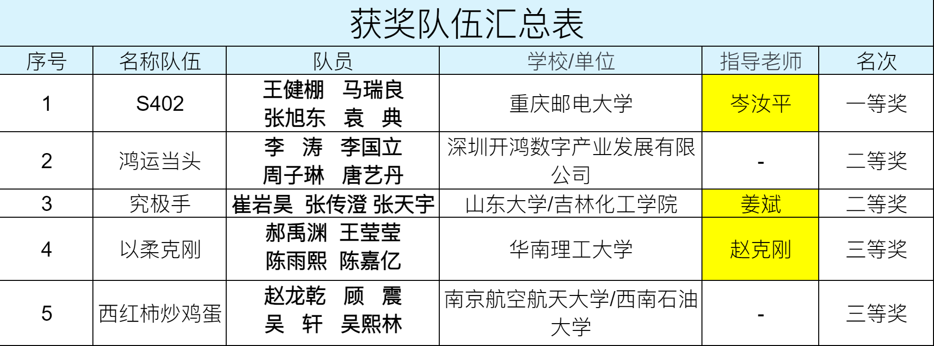大赛将按照队伍选出一、二、三等奖各一名